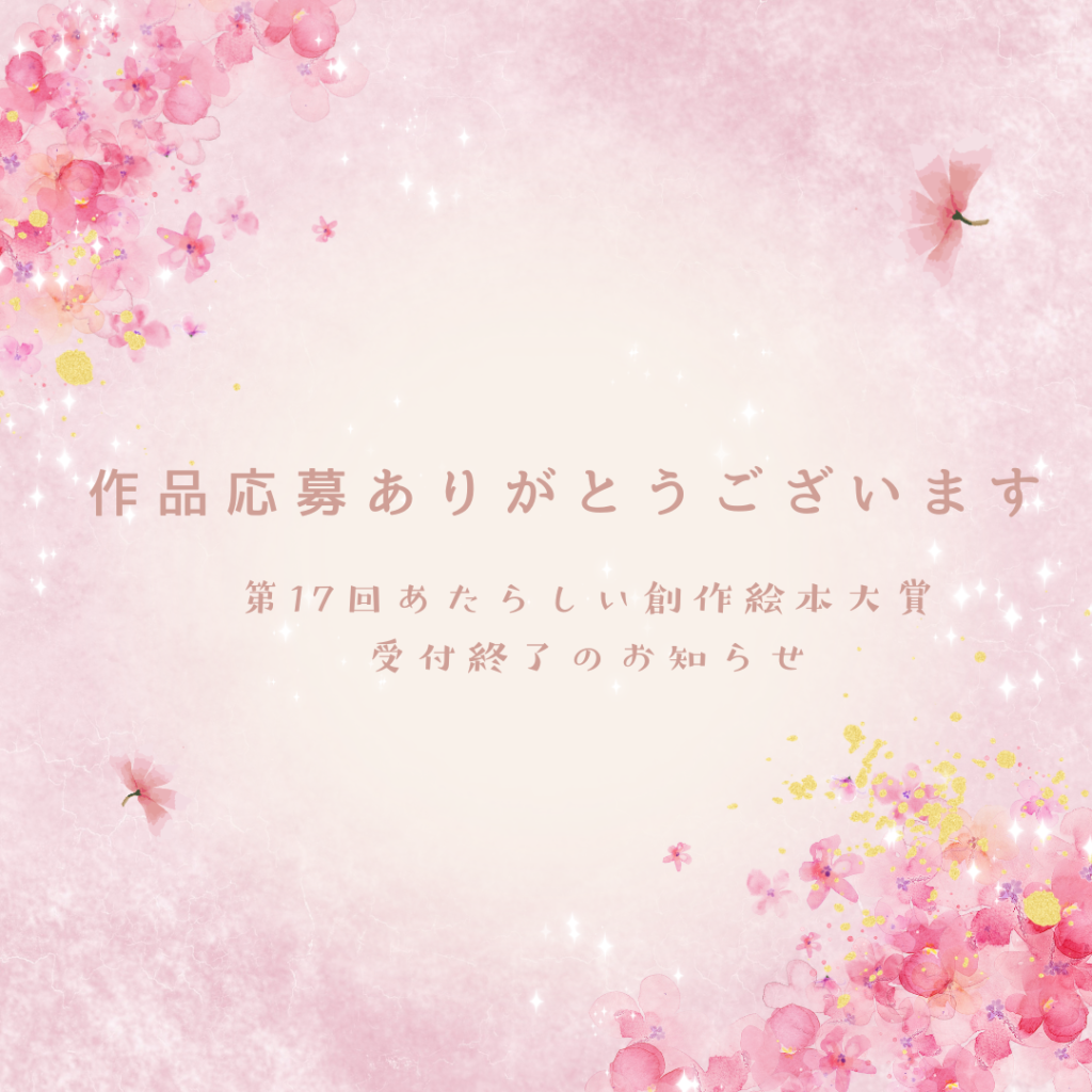 お知らせ 第17回あたらしい創作絵本大賞 受付終了のお知らせ 第17回あたらしい創作絵本大賞への たくさんの作品応募 ありがとうございます。 受付終了しました。 ただいま開封作業中です。 審査結果は5月...